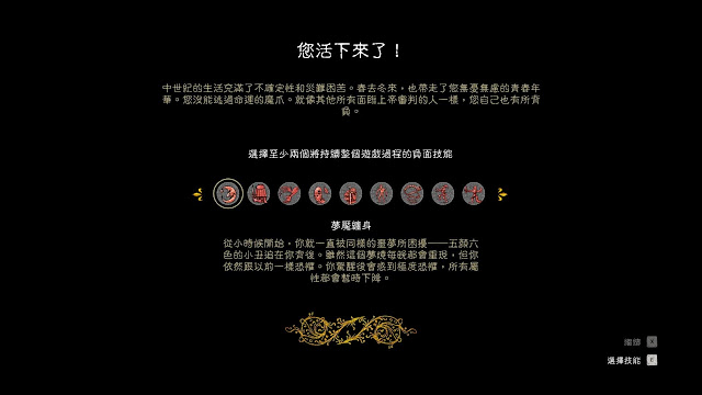 好了,在你 "死了幾次" 之後,你終於活下來了。現在畫面上有九個負面技能,你至少要選擇其中的兩個,你才能進行困難模式。