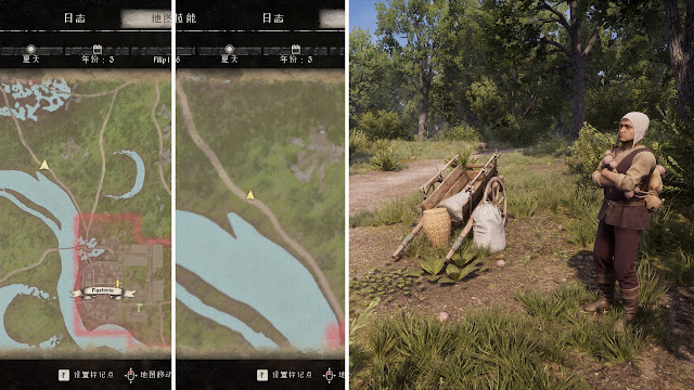 我這裡只知道河灣地的甜菜大亨,他的出現地點有兩個,一個在P村北邊大門出去往沼澤的路上,另一個則是在S村東邊。這個我之前寫NPC文章就分享過,我就再貼一次圖片: